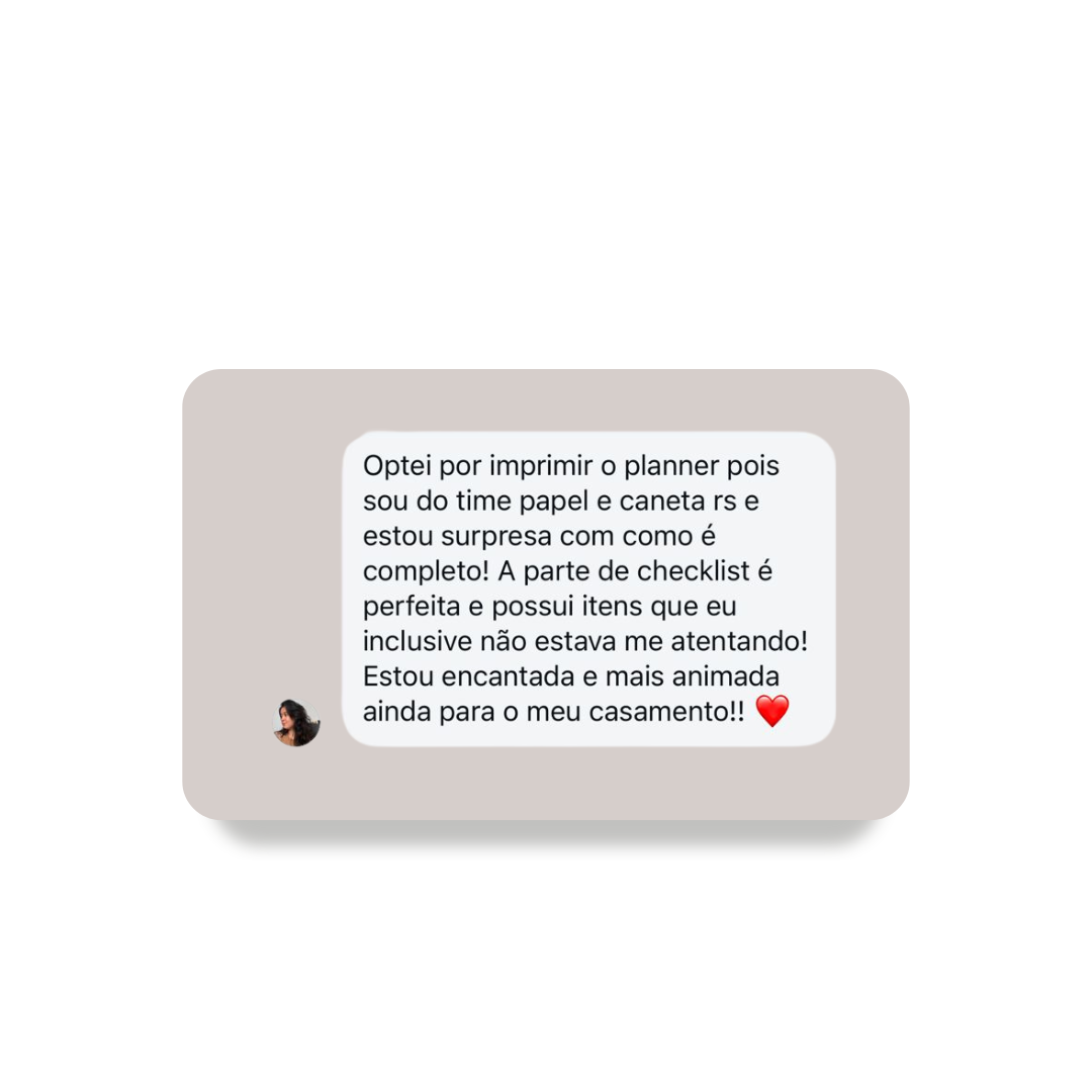 O arquivo em PDF do Planner da Noiva também inclui uma versão pronta para impressão, com as páginas já organizadas para serem impressas no formato que você desejar (A5 ou A4)!